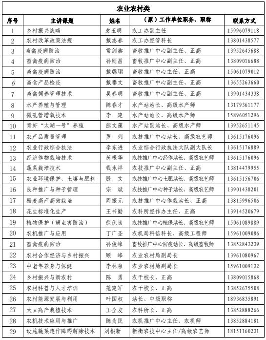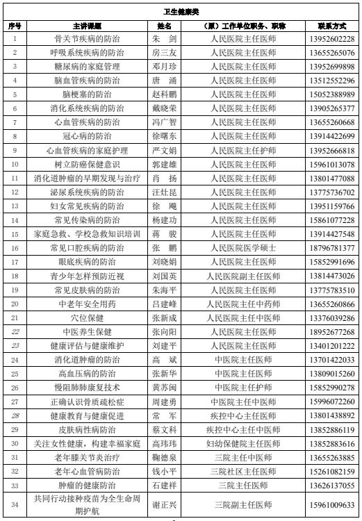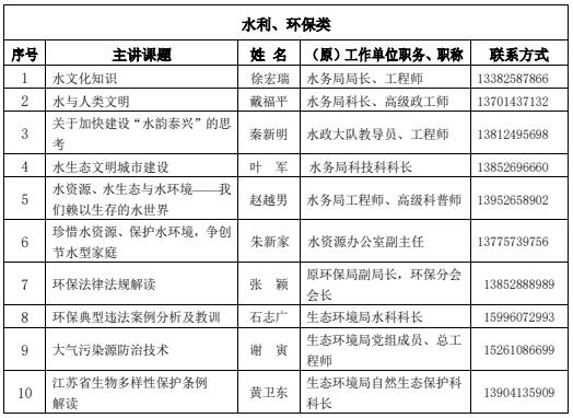 泰兴市科普讲师团、泰兴市社区科普大学讲课清单(2025-2026年)